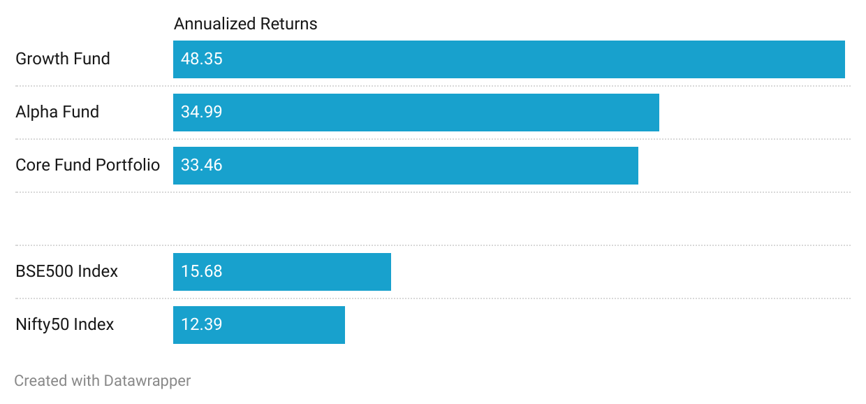 The results clearly demonstrate that Large & Mid-Cap and Multicap PMS have outperformed both the NIFTY50 & BSE500 indices in generating wealth for investors.